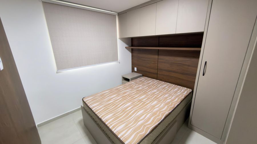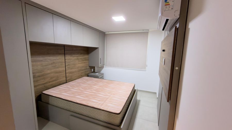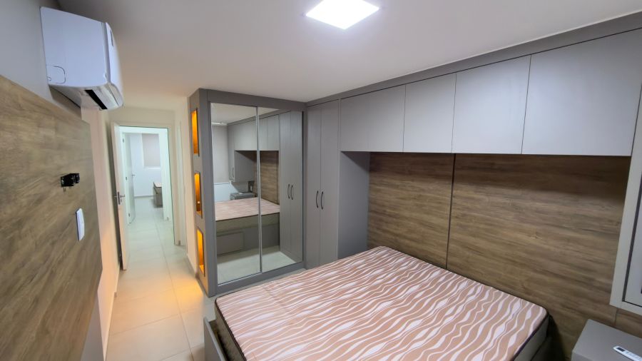 - Quartos com móveis planejados, cama com colchão, suíte com ar condicionado;