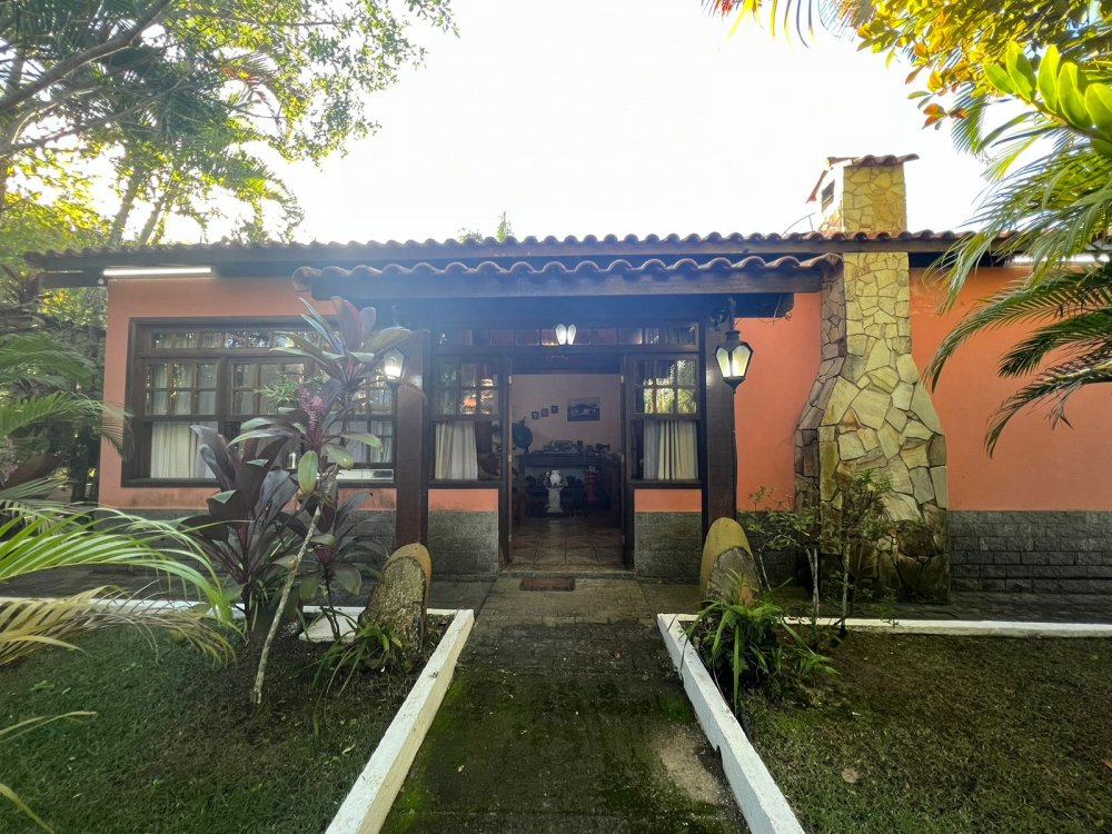 Casa principal, com ampla com lareira, sala 02 suítes, cozinha, lavabo, varanda com banheiro e churrasqueira;