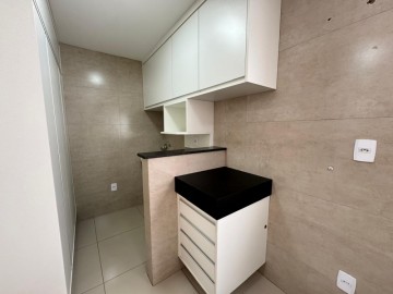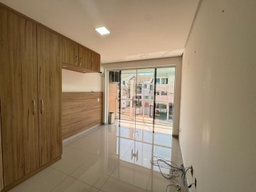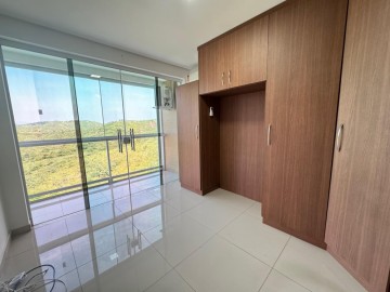 A varanda na frente, conjugada com o quarto e sala, possui um fechamento em blindex que traz ainda mais charme para o ambiente. A sala ampla oferece espaço de sobra para reunir a família e os amigos. A cozinha e a área de lavar também contam com móveis planejados, garantindo praticidade no dia a dia.