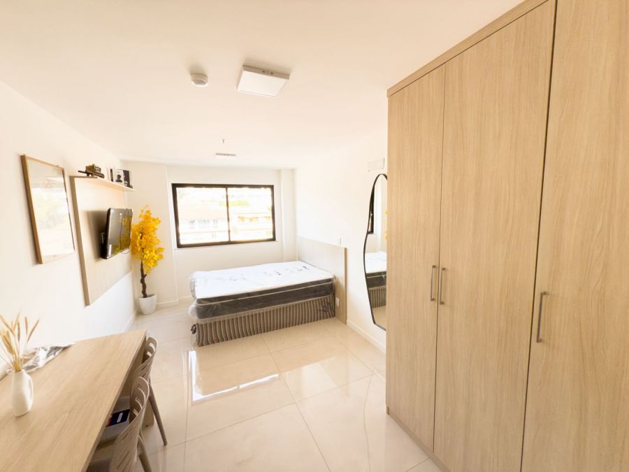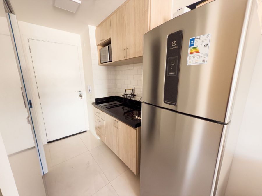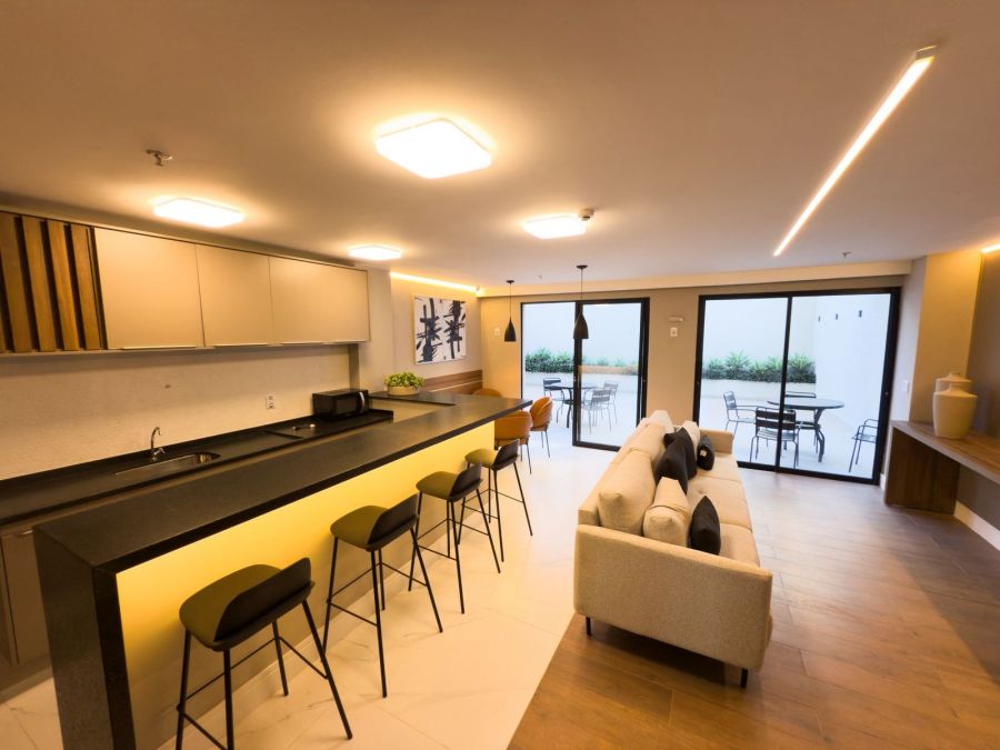 Desfrute de um ambiente moderno e funcional, com 1 dormitório perfeito para o seu descanso, 1 banheiro social e uma prática cozinha americana, ideal para preparar suas refeições favoritas.