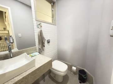 A casa conta com ambientes amplos e bem iluminados, incluindo duas salas espaçosas, ideais para receber amigos e familiares. Além disso, possui dois lavabos, um banheiro social e uma área de serviço completa com banheiro.